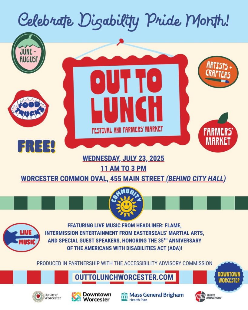 Join for an afternoon of live performances, local food trucks, and lots more at the 2025 Out to Lunch Festival & Farmers’ Market, presented by the Downtown Worcester Business Improvement District, the City of Worcester, and generous sponsors!